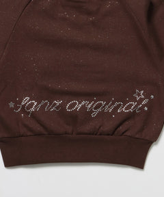 sqnz glitter zip top / グリッター ダブルジップ ジップスウェット 裏起毛 ラインストーン 【セットアップ着用可能】 モカ