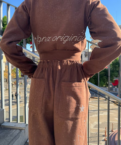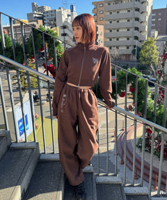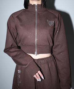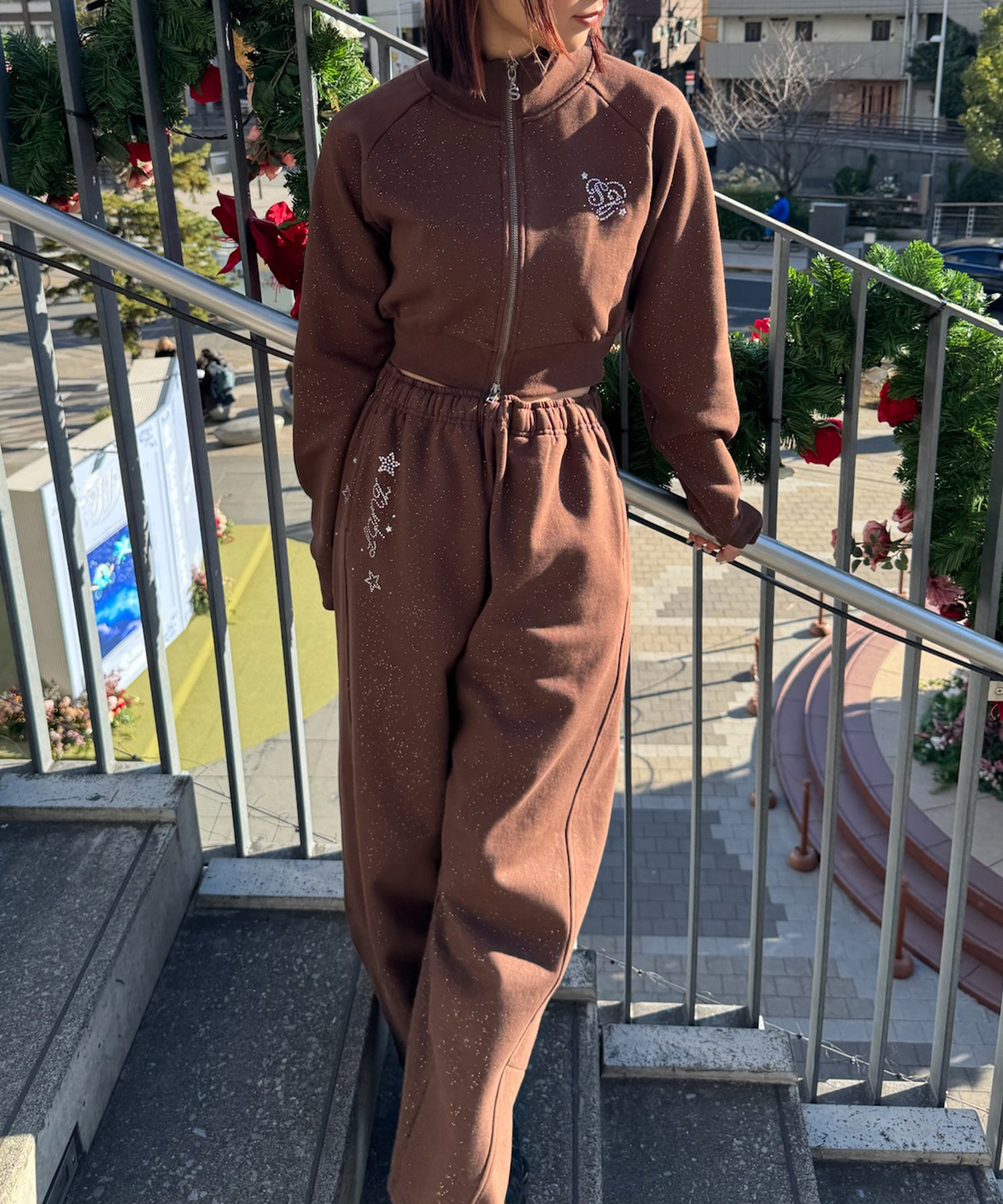 - sqnz glitter zip top / グリッター ダブルジップ ジップスウェット 裏起毛 ラインストーン 【セットアップ着用可能】 モカ