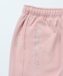 sqnz glitter sweat pants / グリッター スウェットパンツ ラインストーン ドローストリング ポケット 裏起毛 【セットアップ着用可能】 ペールピンク