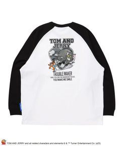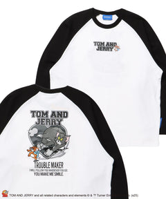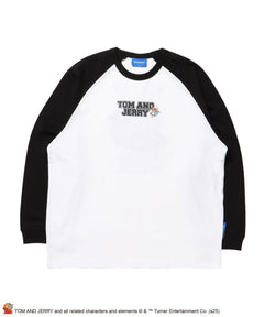 TJ HEART VINTAGE RAGLAN TEE / トムとジェリー ラグランTシャツ 長袖 クルーネック プリント 刺繍 ブラック