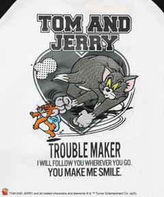 愛らしいトムとジェリーのデザインが映える、ヴィンテージ感たっぷりのラグランTシャツ。