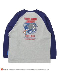 TJ HEART VINTAGE RAGLAN TEE / トムとジェリー ラグランTシャツ 長袖 クルーネック プリント 刺繍 ネイビー