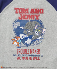 愛らしいトムとジェリーのデザインが映える、ヴィンテージ感たっぷりのラグランTシャツ。