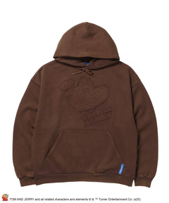TJ APPLIQUE WASHED PK / トムとジェリー パーカー 加工 ワッペン 裏起毛 フーディ ブラウン