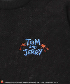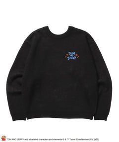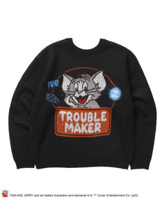 TJ TROUBLE MAKER KNIT / トムとジェリー ニット 刺繍 ジャカード クルーネック リバーシブル ブラック