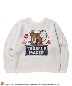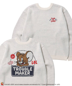 TJ TROUBLE MAKER KNIT / トムとジェリー ニット 刺繍 ジャカード クルーネック リバーシブル アイボリー