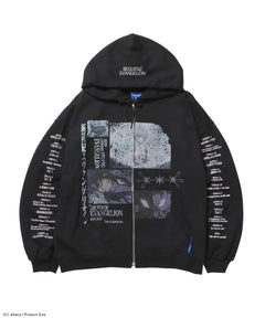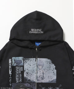 - EVA BEST SCENE ZIP PK / オーバーサイズ ビッグシルエット ジップパーカー 刺繍 プリント フーディ 裏起毛 ユニセックス ブラック