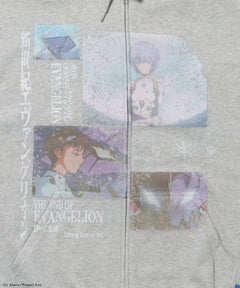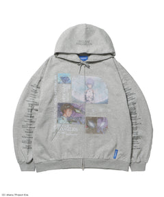 - EVA BEST SCENE ZIP PK / オーバーサイズ ビッグシルエット ジップパーカー 刺繍 プリント フーディ 裏起毛 ユニセックス グレー