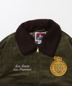 - REMOVAL BOA COLLAR CORD JACKET /ジャケット ボア 刺繍 ワッペン スイングトップ カーキ