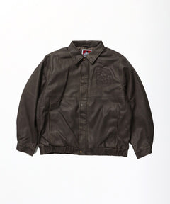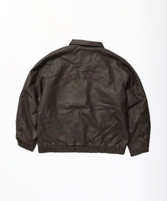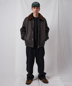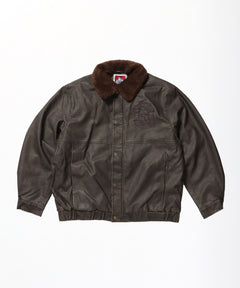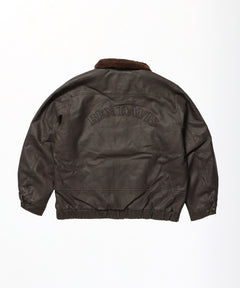 - REMOVAL BOA COLLAR FAUX LEATHER JACKET / フェイクレザー ジャケット ボア ジップ キルティング ワッペン ブラウン