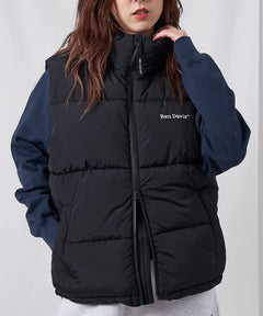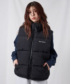 BD PUFFER VEST / ベスト ジャケット 中綿 ダウン パファー 刺繍 ドローコード ブラック