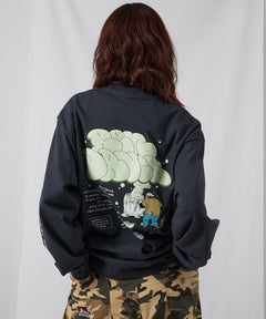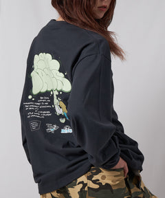 - BUBBLE L/S TEE[WIDE] / ロンT 長袖 ワンポイント ワイドシルエット チャコール