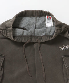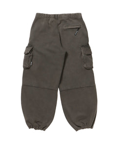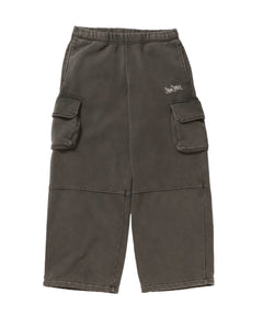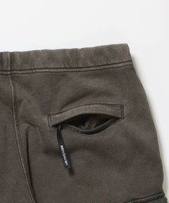 FADED SWEAT CARGO PANTS / カーゴパンツ スウェット ワイドシルエット 裏起毛 ドローコード 刺繍 ≪セットアップ着用可能≫ ダークブラウン