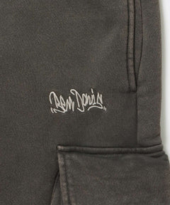 - FADED SWEAT CARGO PANTS / カーゴパンツ スウェット ワイドシルエット 裏起毛 ドローコード 刺繍 ≪セットアップ着用可能≫ ダークブラウン