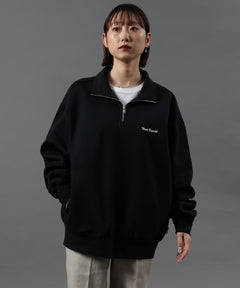 HEAVY SWEAT HALF ZIP / ヘビースウェット ハーフジップ 裏起毛 ジップ ワンポイント ブラック