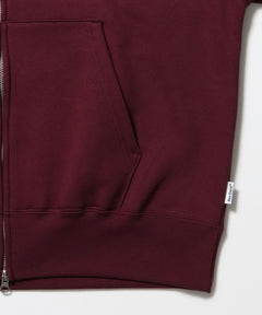 HEAVY SWEAT ZIP HOODIE / パーカー ジップ ワンポイント 刺繍 裏起毛 バーガンディー