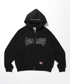 - JAGGED LOGO ZIP HOODIE /パーカー ジップパーカー ダブルジップ 短丈 刺繍 ブラック