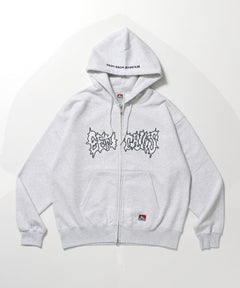 - JAGGED LOGO ZIP HOODIE /パーカー ジップパーカー ダブルジップ 短丈 刺繍 アッシュグレー