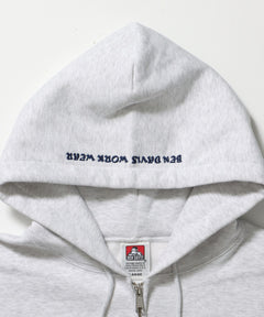 JAGGED LOGO ZIP HOODIE /パーカー ジップパーカー ダブルジップ 短丈 刺繍 アッシュグレー