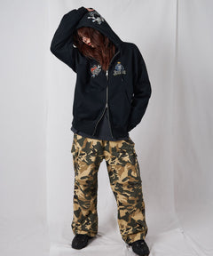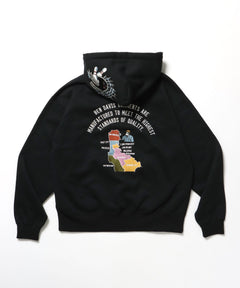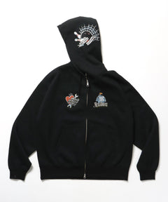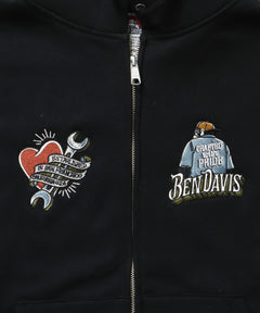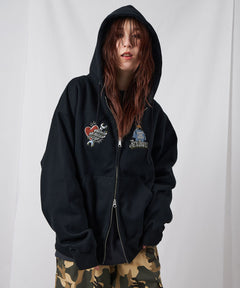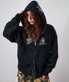 - SOUVENIR ZIP HOODIE /パーカー ジップパーカー ダブルジップ 短丈 刺繍 ブラック