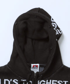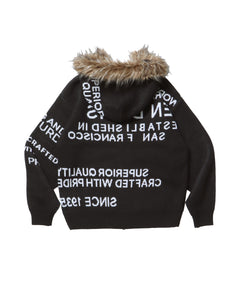 FAUX FUR TRIM KNIT JACKET / オーバーサイズ ニット ファー ジップパーカー フーディ ダブルジップ ブラック