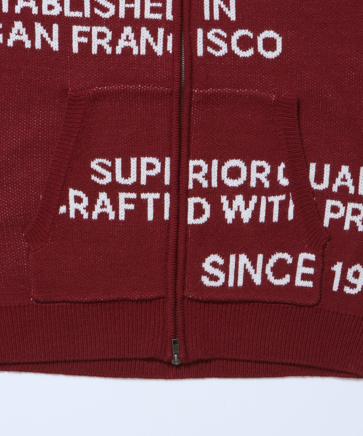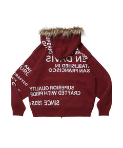 - FAUX FUR TRIM KNIT JACKET / オーバーサイズ ニット ファー ジップパーカー フーディ ダブルジップ バーガンディー
