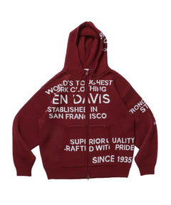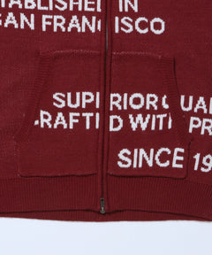 FAUX FUR TRIM KNIT JACKET / オーバーサイズ ニット ファー ジップパーカー フーディ ダブルジップ バーガンディー