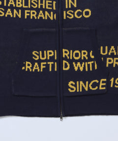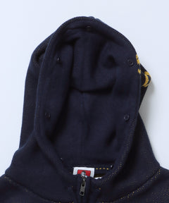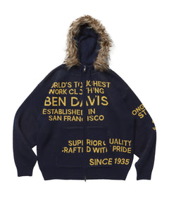 FAUX FUR TRIM KNIT JACKET / オーバーサイズ ニット ファー ジップパーカー フーディ ダブルジップ ネイビー