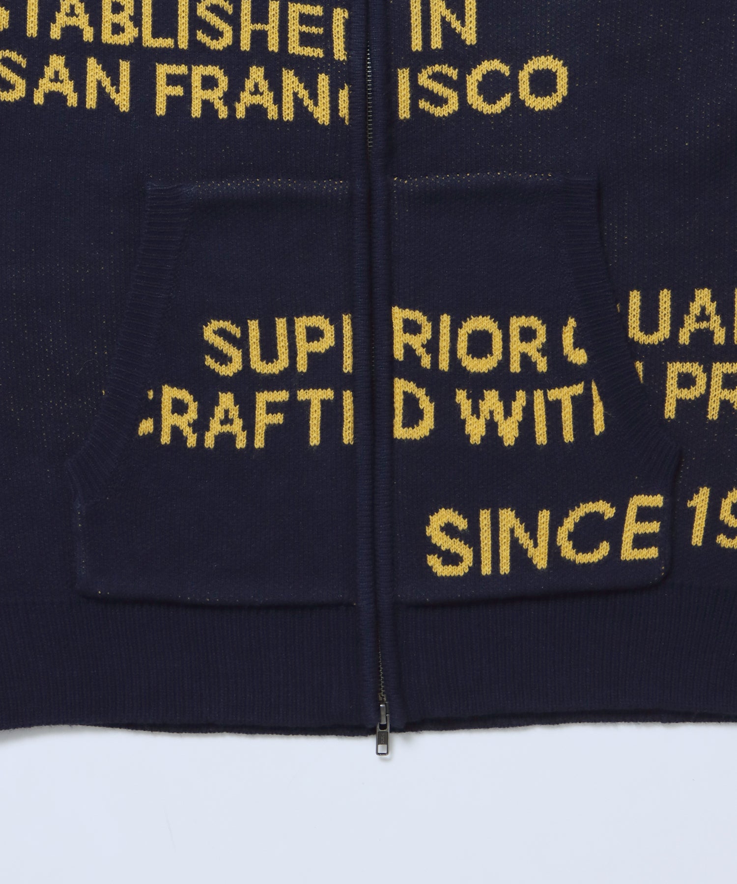 ・12GGのダブルジャカード編みで立体的な仕上がり。