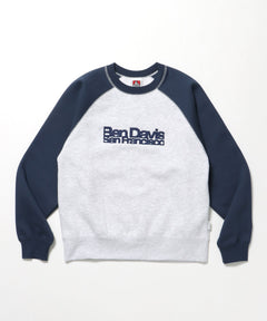 - CENTER LOGO RAGLAN CREW (70's FIT) / スウェット ラグラン クルーネック 刺繍 裏起毛 ブルーグレー
