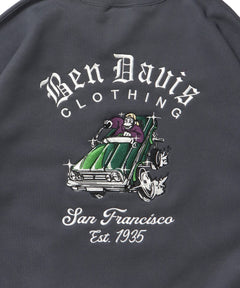 LOWRIDE EMB CREW / スウェット ラグラン クルーネック 刺繍 裏起毛 ラグラン チャコール