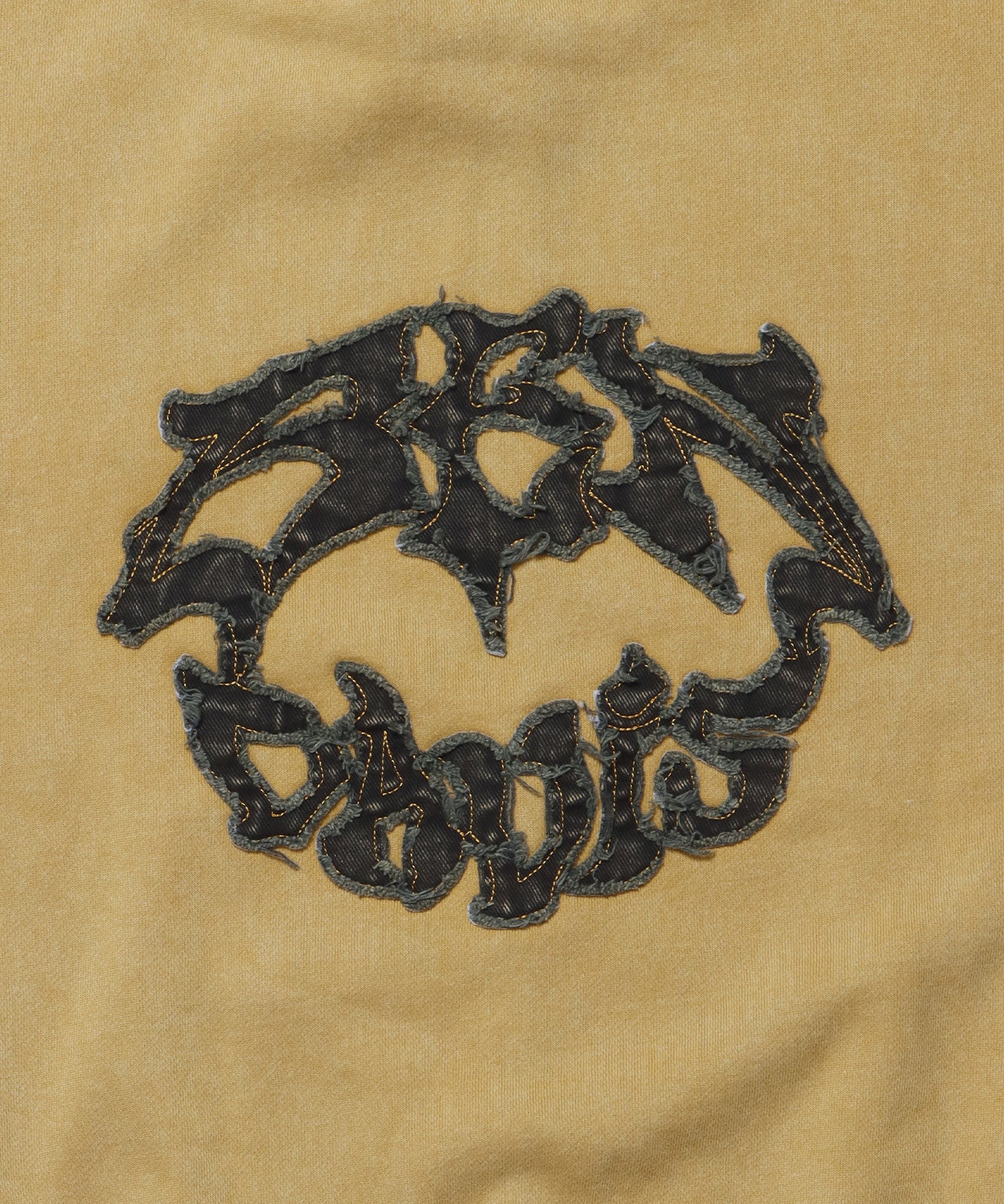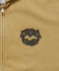 PATCHING BLEACH ZIP HOODIE / 加工 ジップパーカー ワッペン フーディ 裏起毛 マスタード