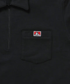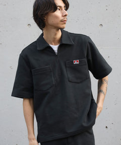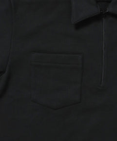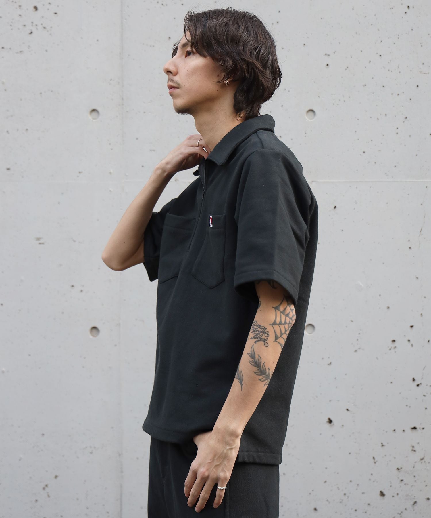 - 90TH H.SWEAT S/S 1/2 ZIP SHIRT / ヘビーウェイト 半袖 ハーフジップ 裏毛 ワンポイント ≪セットアップ対応≫ ブラック
