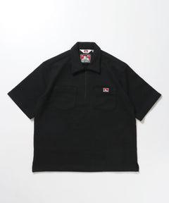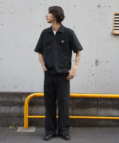 90TH H.SWEAT S/S 1/2 ZIP SHIRT / ヘビーウェイト 半袖 ハーフジップ 裏毛 ワンポイント ≪セットアップ対応≫ ブラック