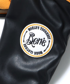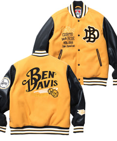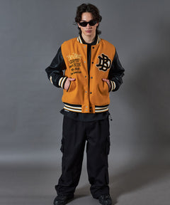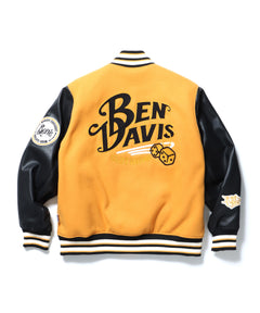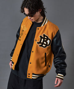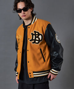 ベンデイビスから身頃フェイクメルトン、袖フェイクレザーを使用したスタジアムジャケットが登場! 前後身頃、両袖に刺繍ワッペンを豪華に施したデザインが◎ 背面の柄は太番の糸を使用したチェーン刺繍で表現された雰囲気抜群な細密まで拘った1着!