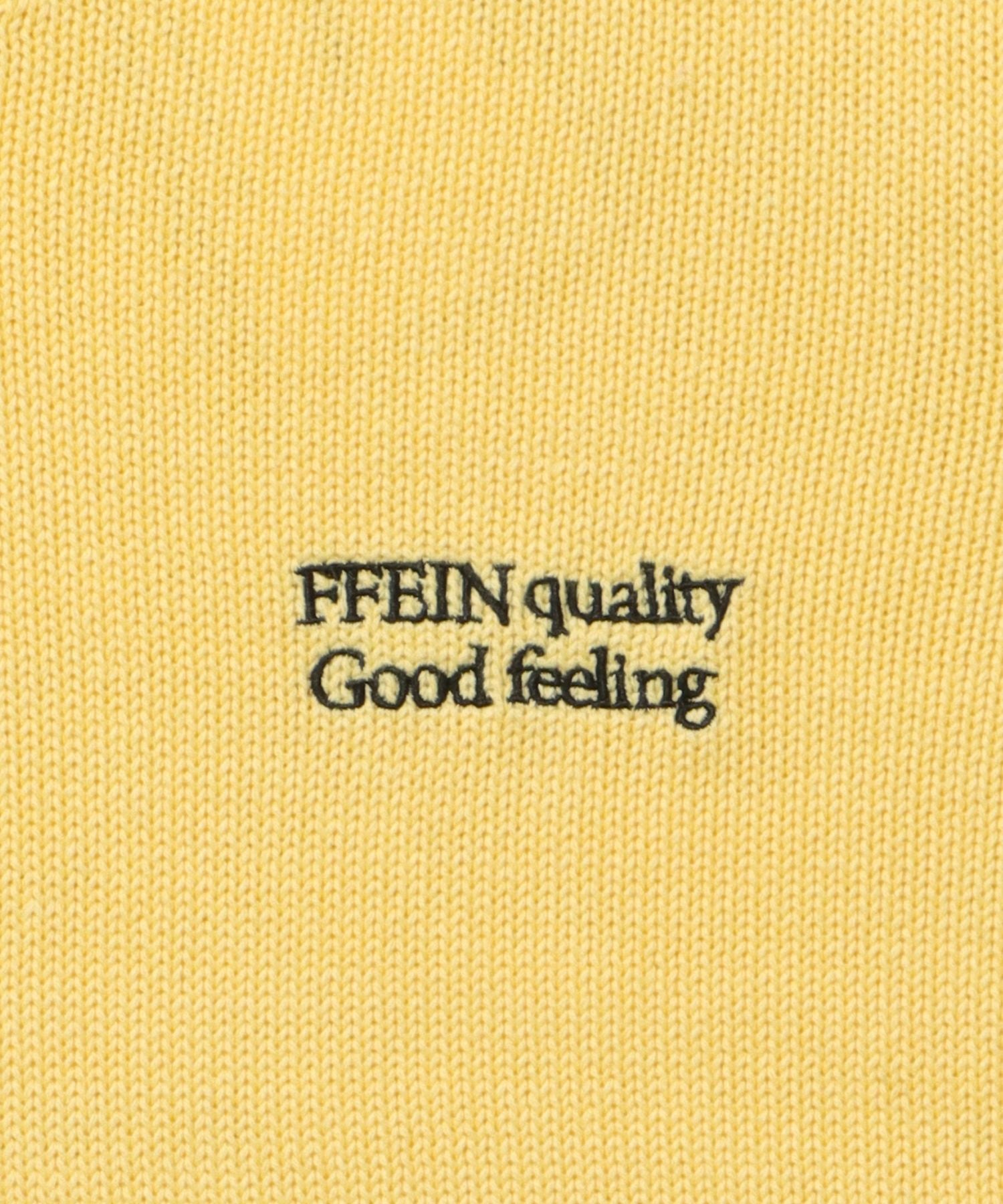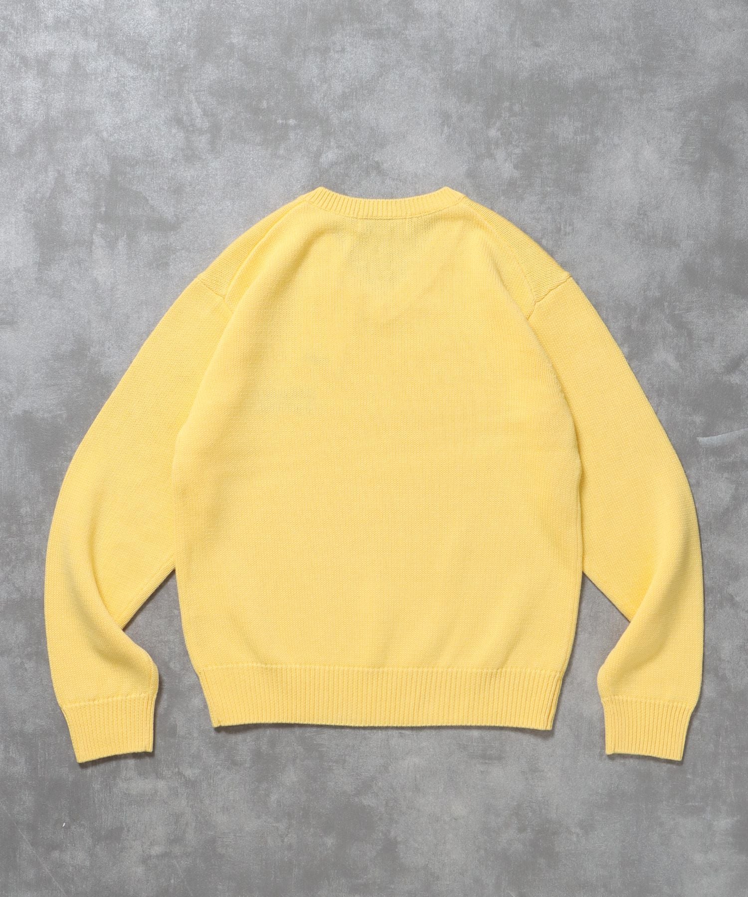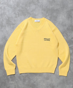 ワンポイントロゴVネックニット/ ニット Vネック 刺繍 ワンポイント 長袖 【短丈】 イエロー