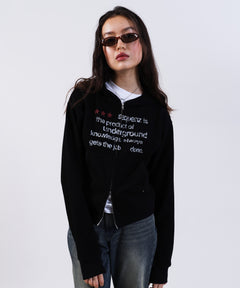 THERMAL LADIES ZIP UP LADIES / ワッフル レディース ジップパーカー サーマル ダブルジップ フーディ ブラック