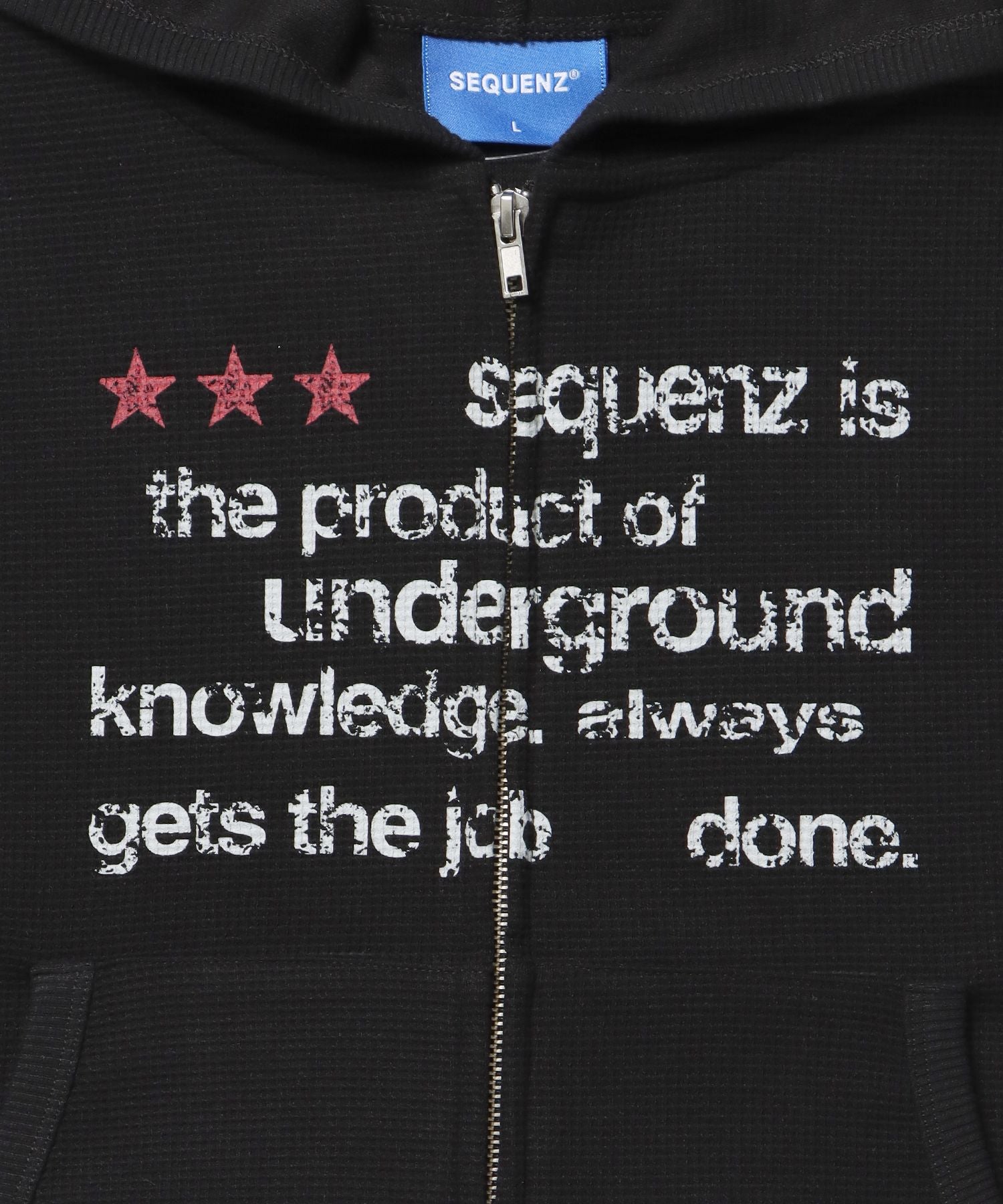 トレンドのアイテムを中心にグラフィカルでキャッチーなデザインを発信するストリートブランド。ブランド名のSEQUENZはSEQUENCE (ひと続き)から生まれた造語でミュージック・シンセサイザーのワンフレーズのこともさす。“Life cycle SEQUENZ”というフレーズをもとに、ライフサイクルのなかで起きるムーブメントや音楽などのカルチャーをインスピレーションとして、ユニークな視点からストリートウエアを提案し続ける。