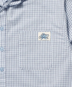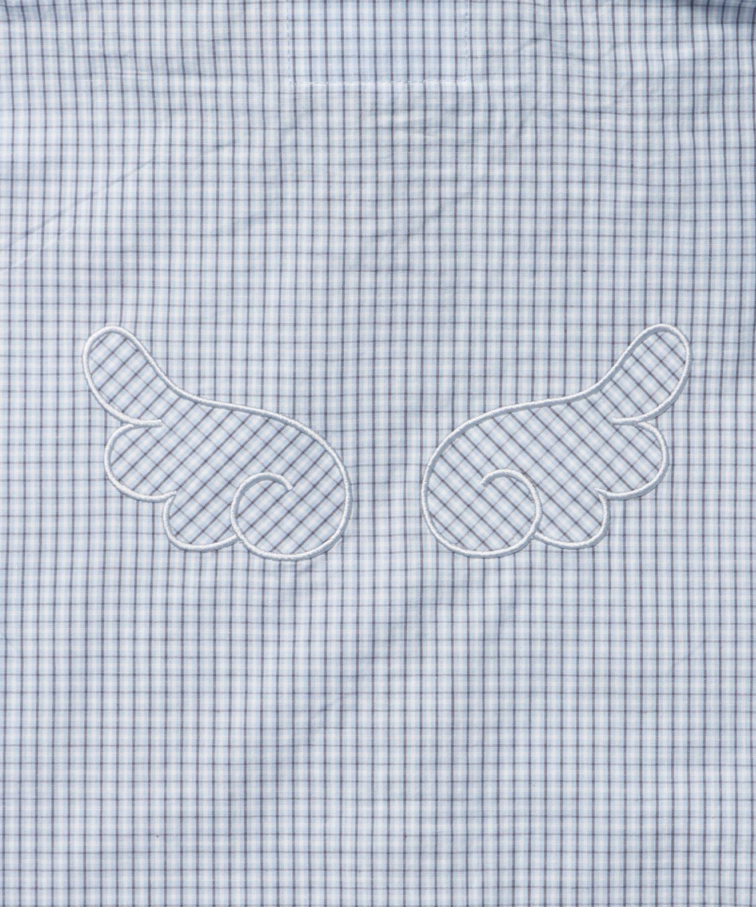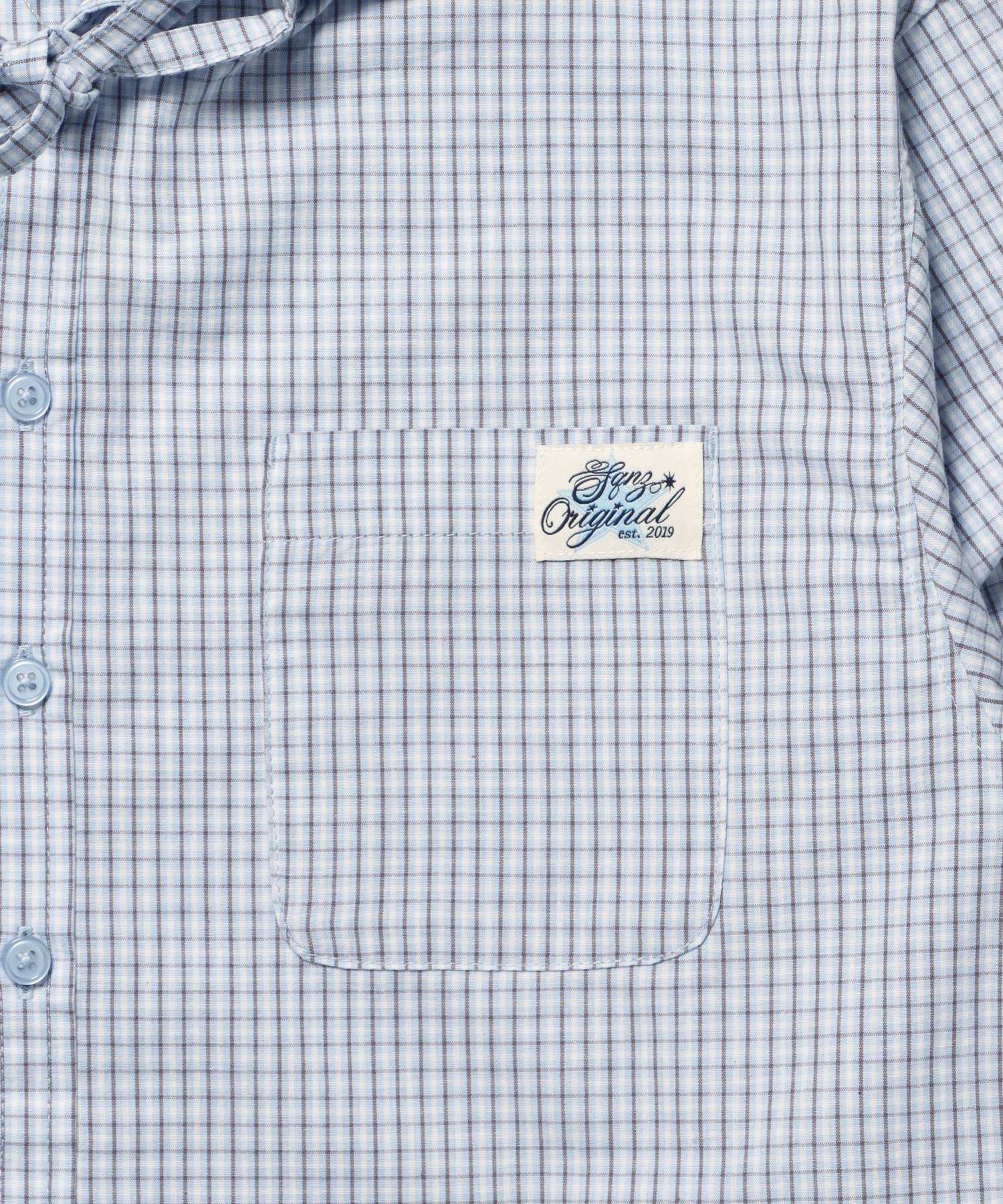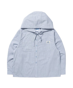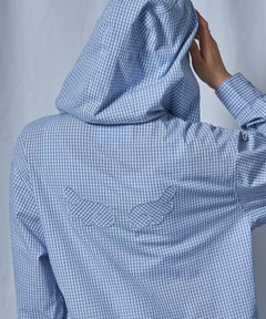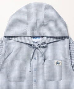 sqnz angel hooded l/s shirts / 長袖シャツ パーカー チェック フーディ ワンポイント シンプル ライトブルー