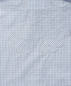 後ろの羽が可愛く、個性的なチェックが特徴的なフーディシャツデザインが魅力の一枚。
