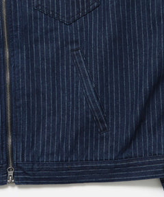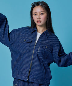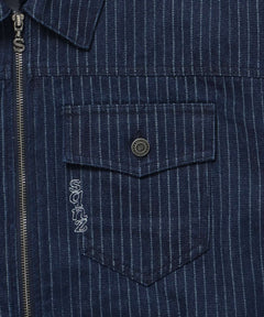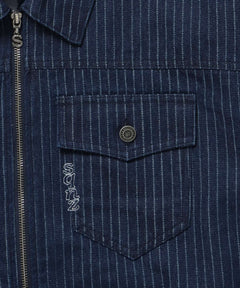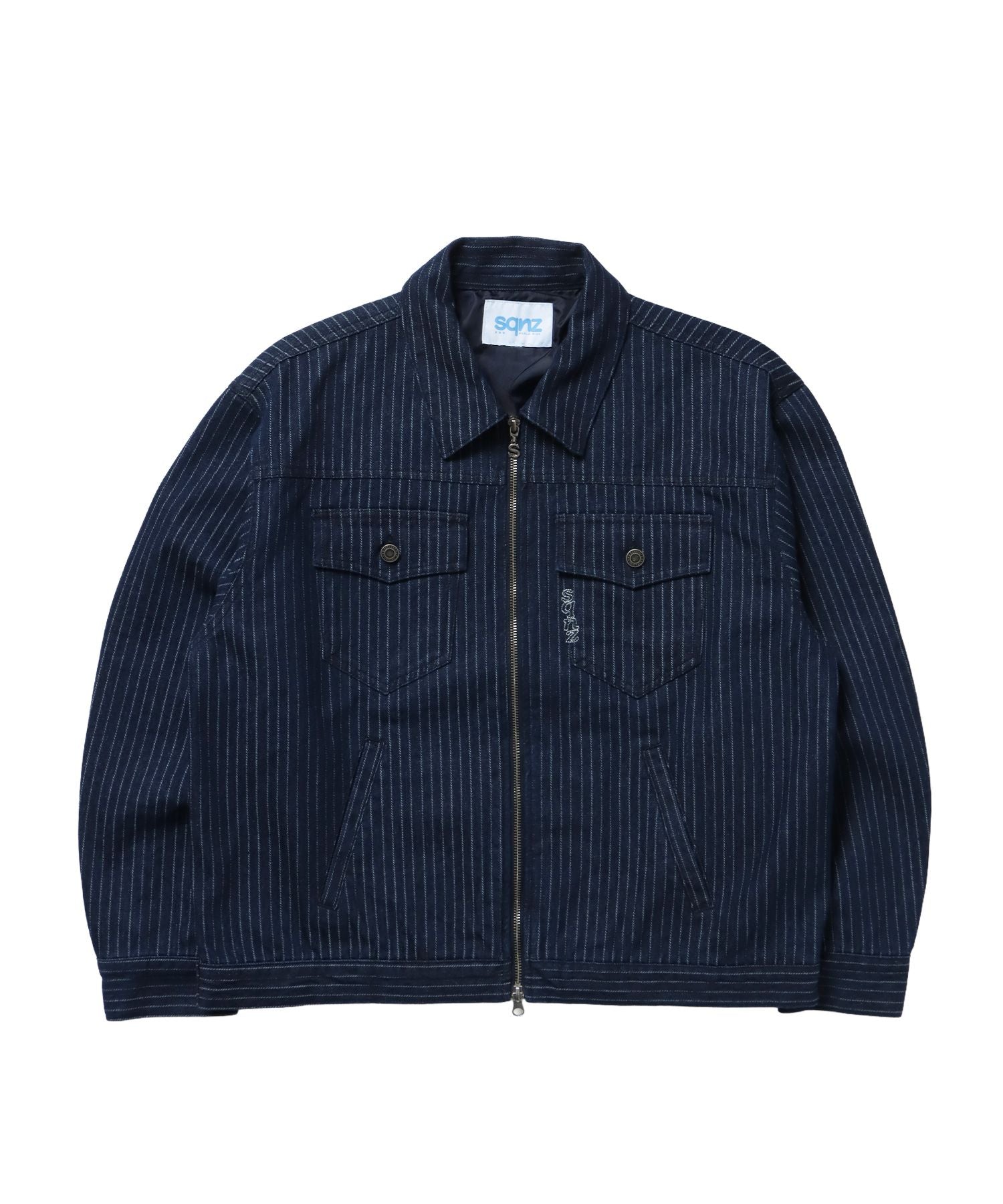 sqnz double pocket zip denim / デニム リジッド ジャケット 刺繍 レザーパッチ ダブルジップ 短丈 ネイビー