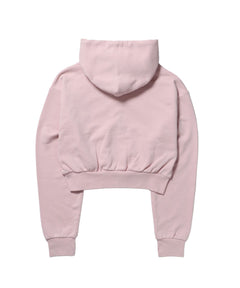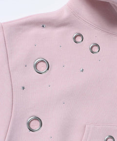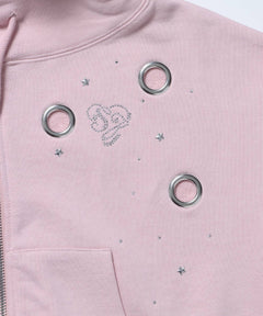 - sqnz rhinestone & eyelet zip p/k / ジップパーカー スタッズ ハトメ ラインストーン フーディ 短丈 裏毛 【セットアップ着用可能】 ライトピンク
