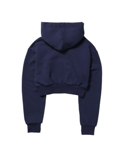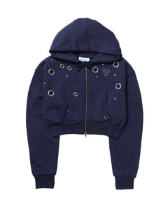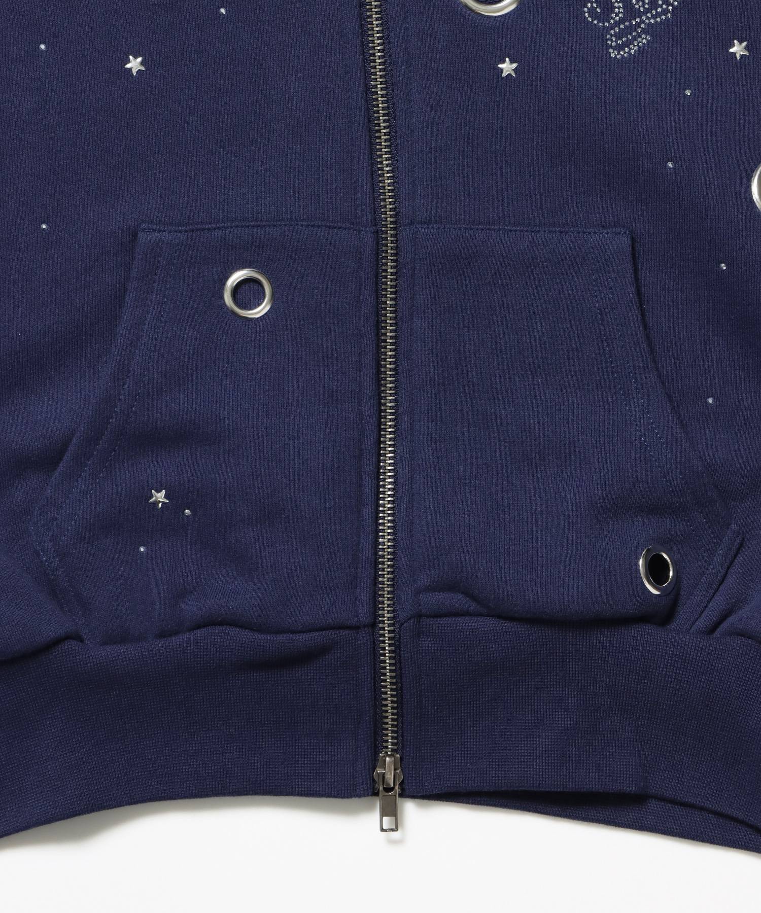 - sqnz rhinestone & eyelet zip p/k / ジップパーカー スタッズ ハトメ ラインストーン フーディ 短丈 裏毛 【セットアップ着用可能】 ダークネイビー