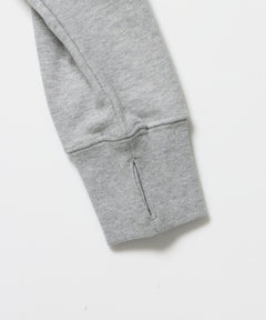 sqnz off shoulder zip p/k / オフショルダー ダブルジップ スウェット 裏毛 ワンポイント サムホール プリント グレー