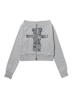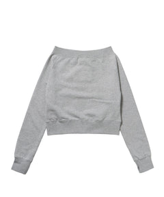 - sqnz off shoulder zip p/k / オフショルダー ダブルジップ スウェット 裏毛 ワンポイント サムホール プリント グレー