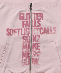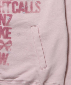 - sqnz off shoulder zip p/k / オフショルダー ダブルジップ スウェット 裏毛 ワンポイント サムホール プリント ライトピンク
