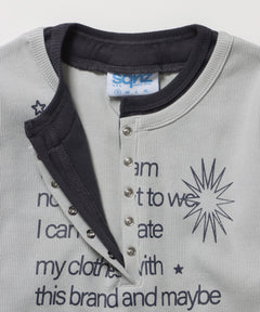 sqnz fake layered henley star l/s tee / 長袖 プリント ヘンリー フェイクレイヤード ツートーン ライトグレー