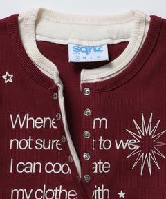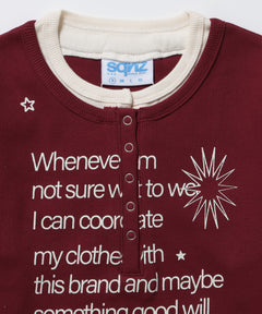sqnz fake layered henley star l/s tee / 長袖 プリント ヘンリー フェイクレイヤード ツートーン バーガンディー