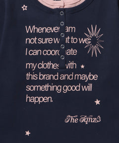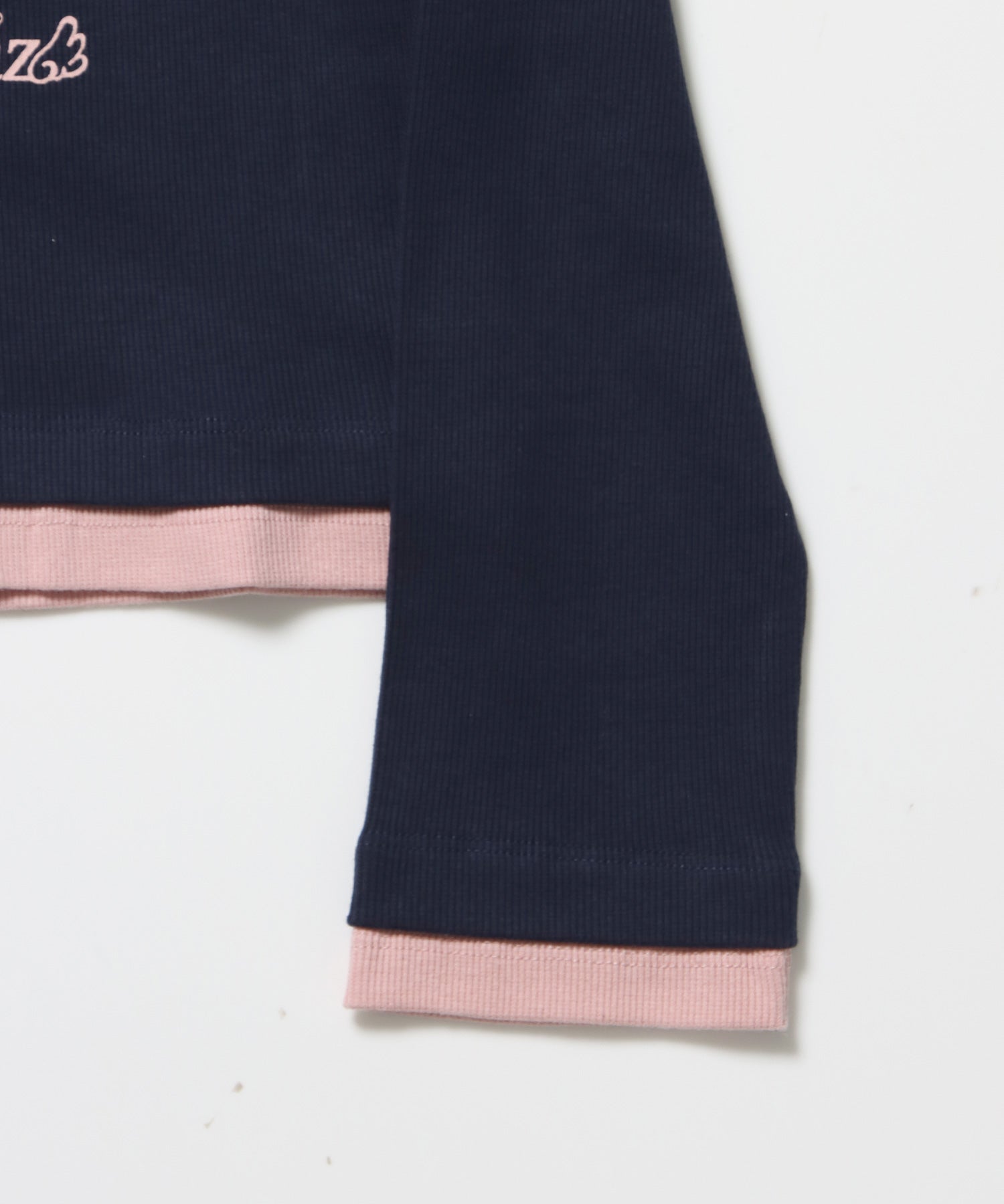 - sqnz fake layered henley star l/s tee / 長袖 プリント ヘンリー フェイクレイヤード ツートーン ネイビー