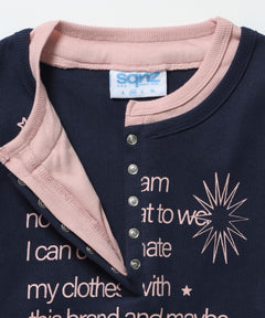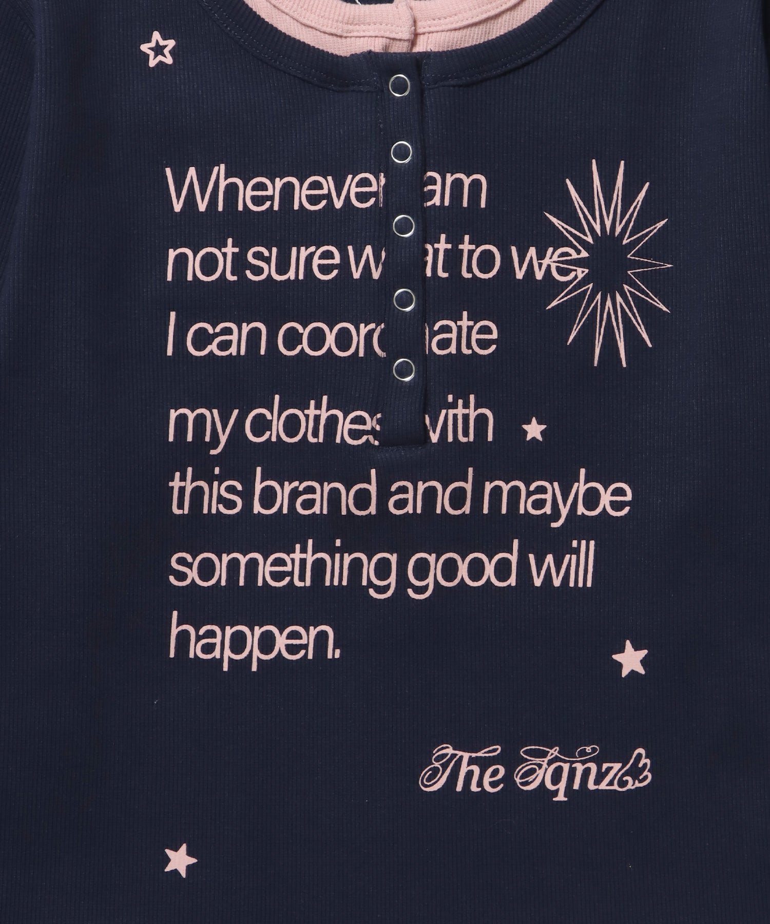 sqnz fake layered henley star l/s tee / 長袖 プリント ヘンリー フェイクレイヤード ツートーン ネイビー